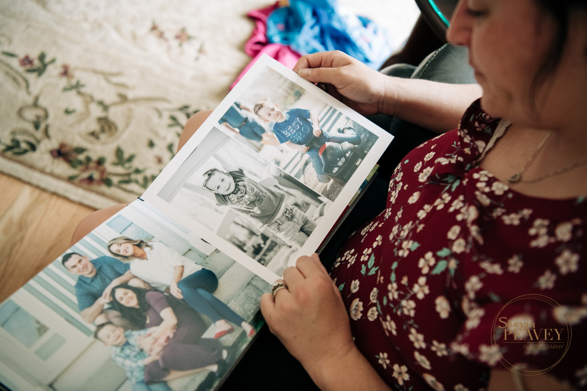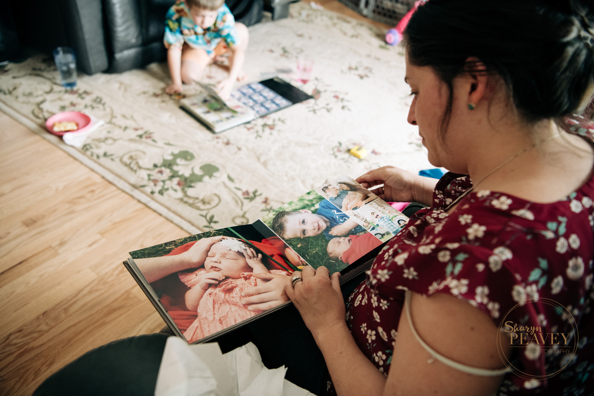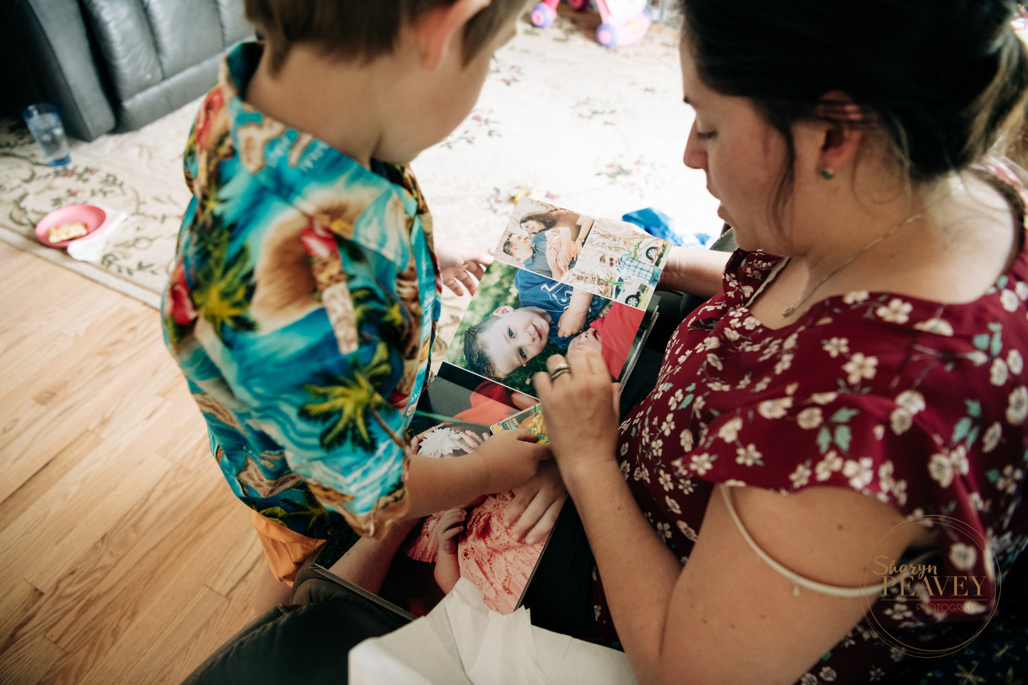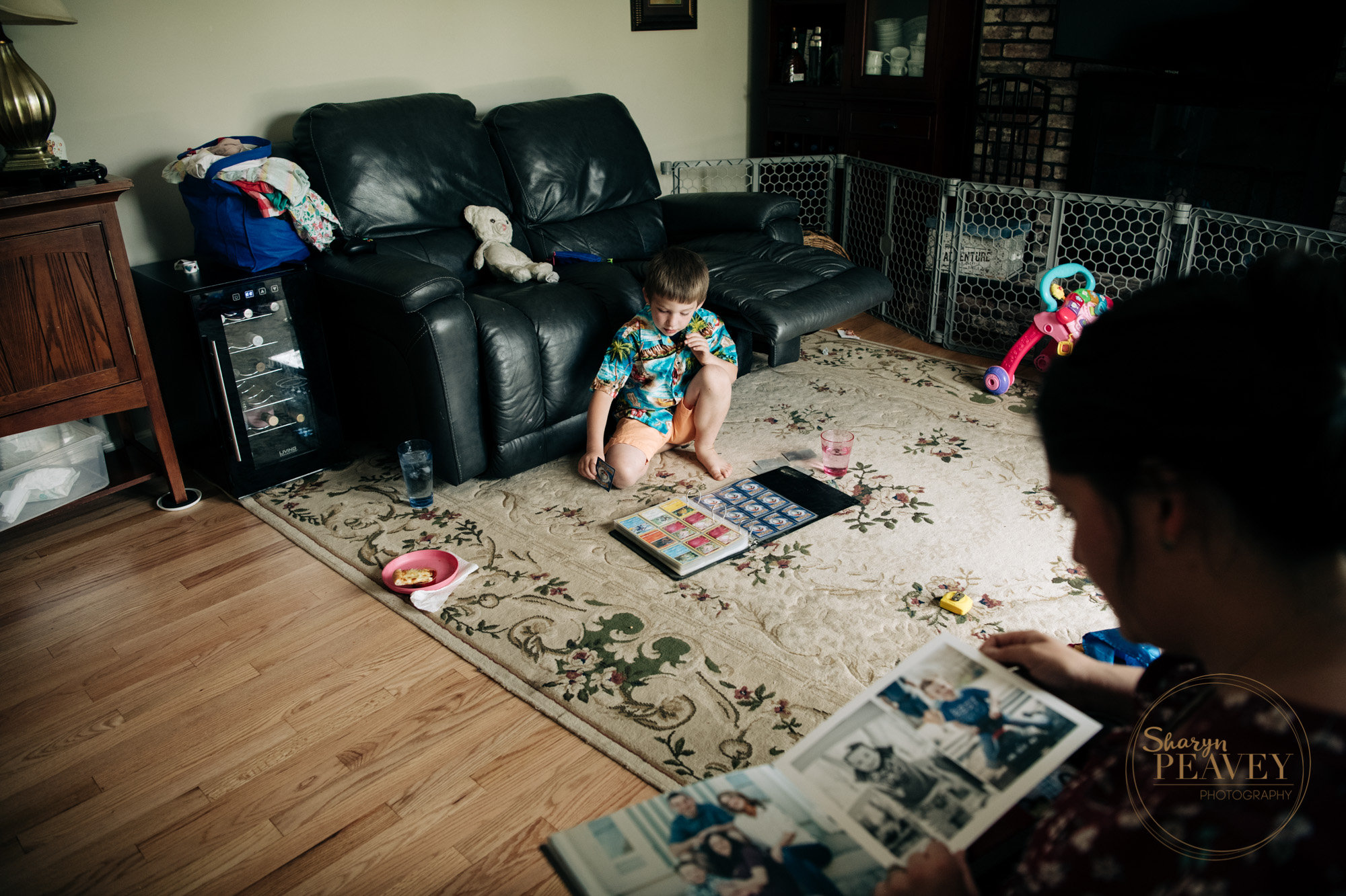 Here's where Kristin finally got to look at her 5-year family album. Big brother Nolan wanted me to look at his Pokeman book instead. And Lorna had lunch and started to fade.