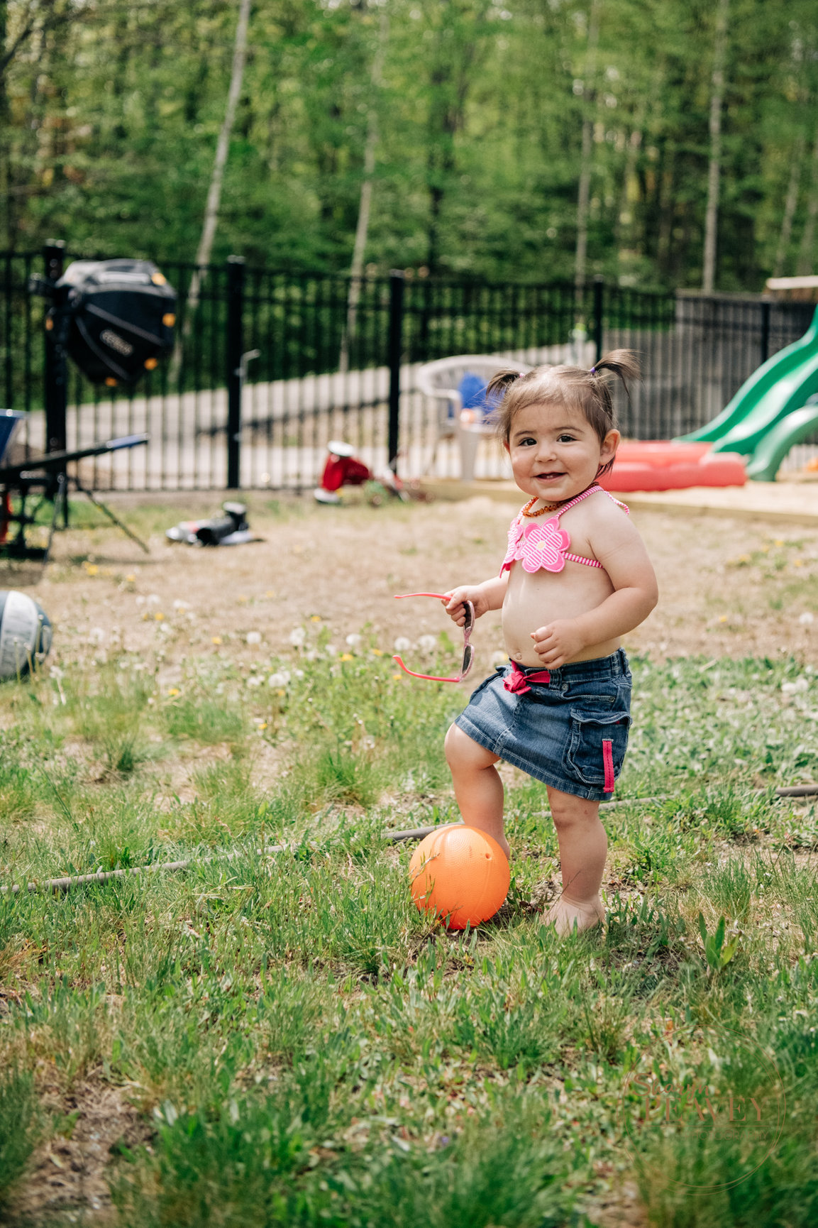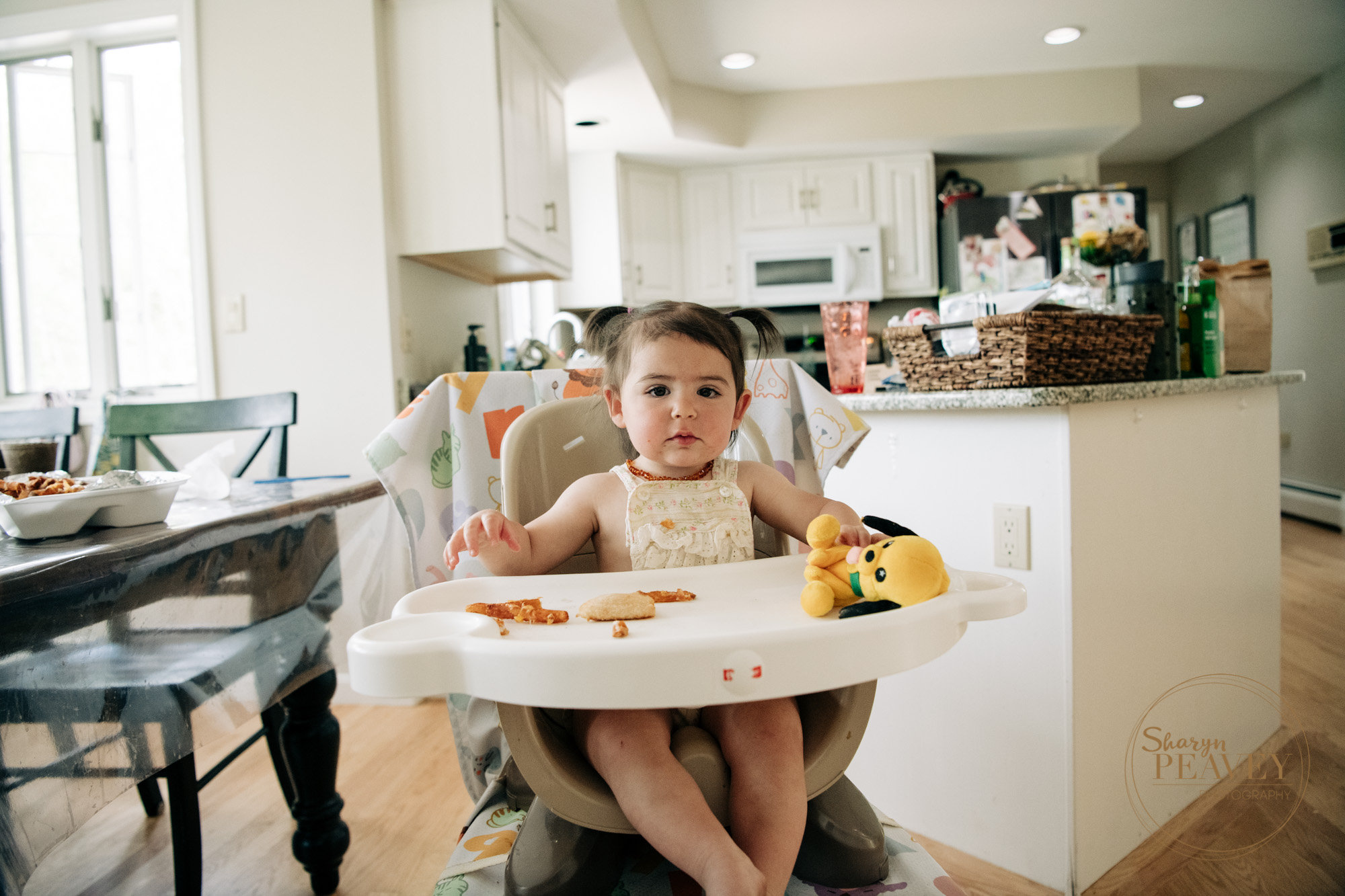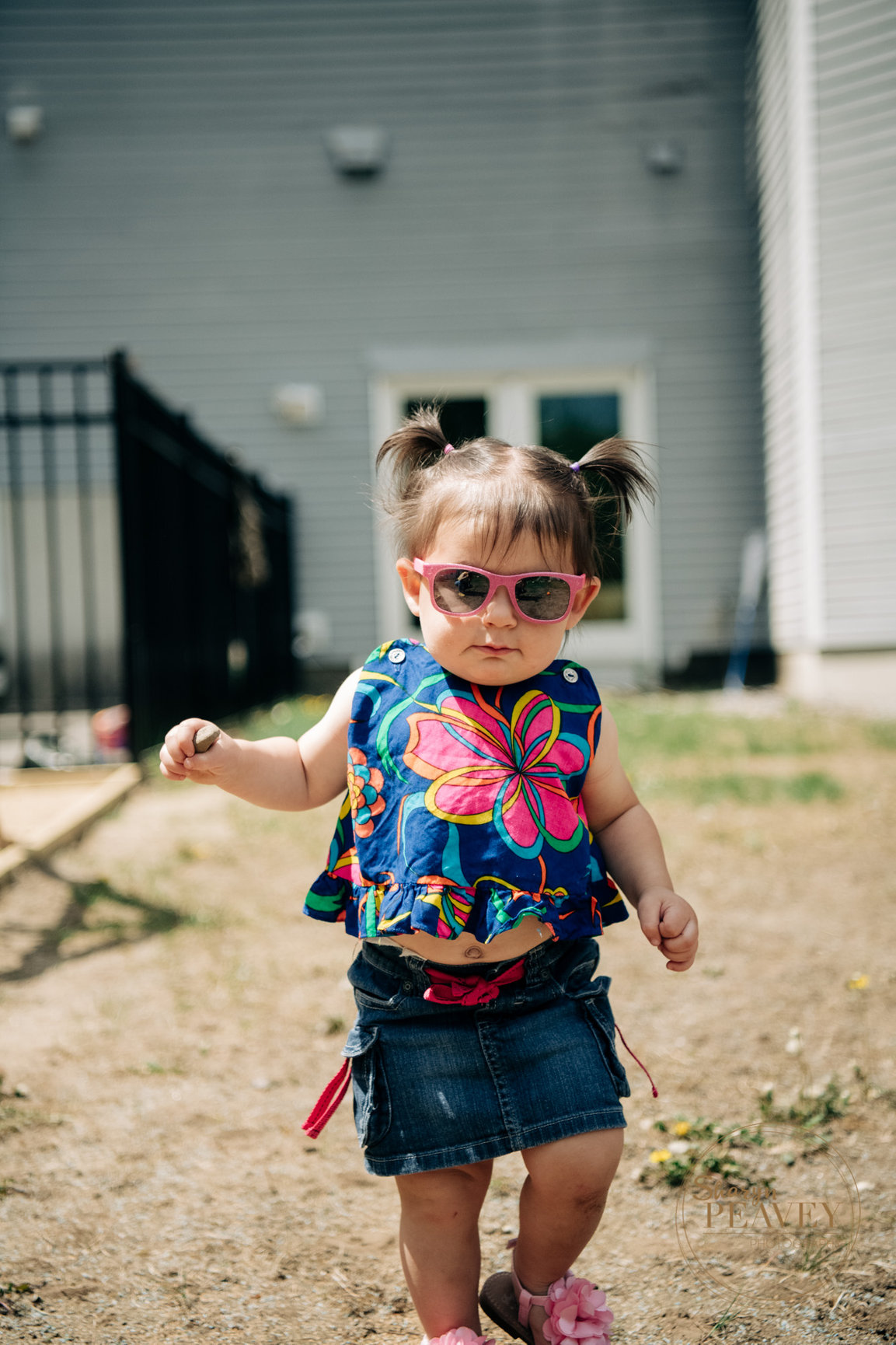 Outfit change #4. Still hanging in there with no nap, like a champ! A few snacks to keep her going.