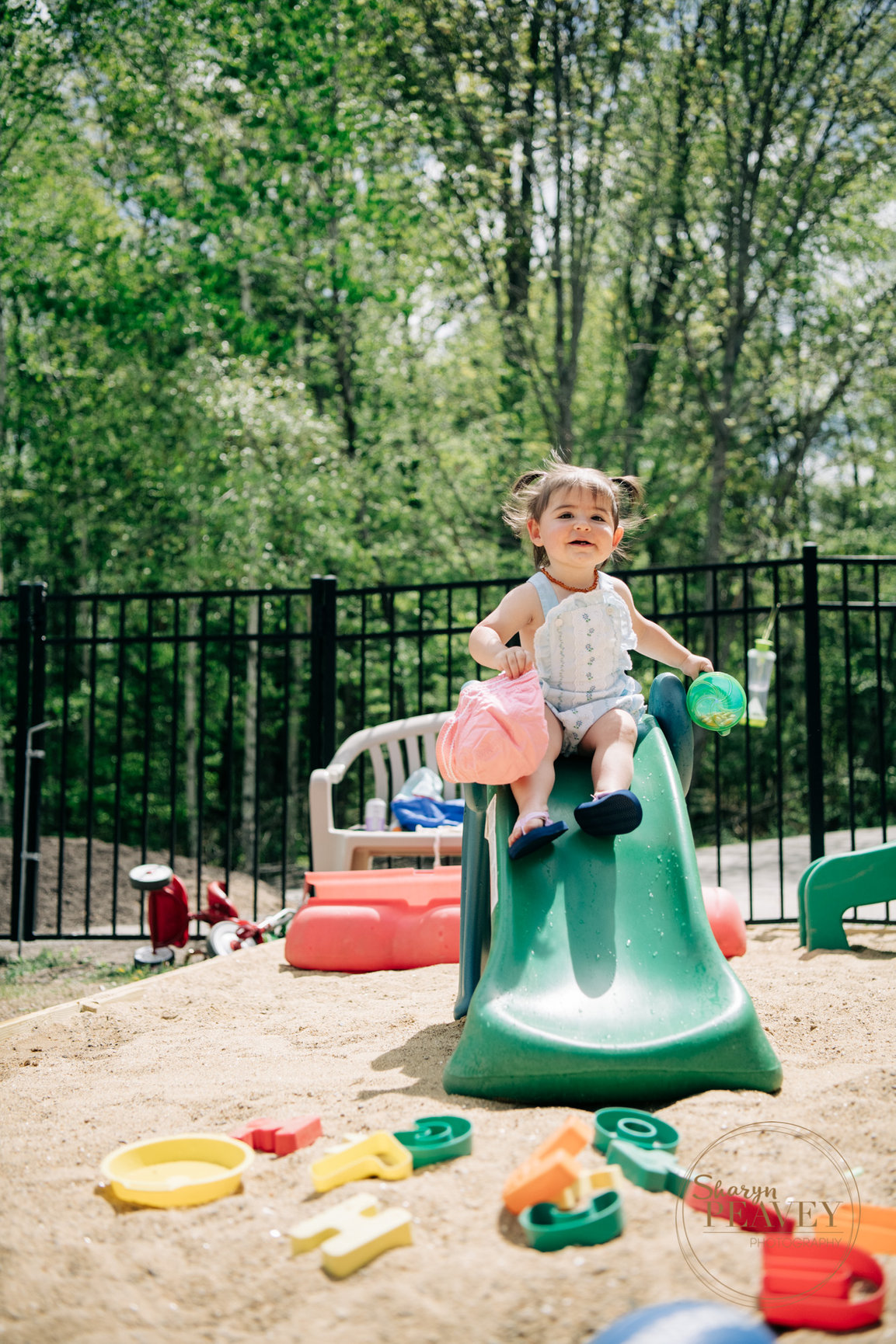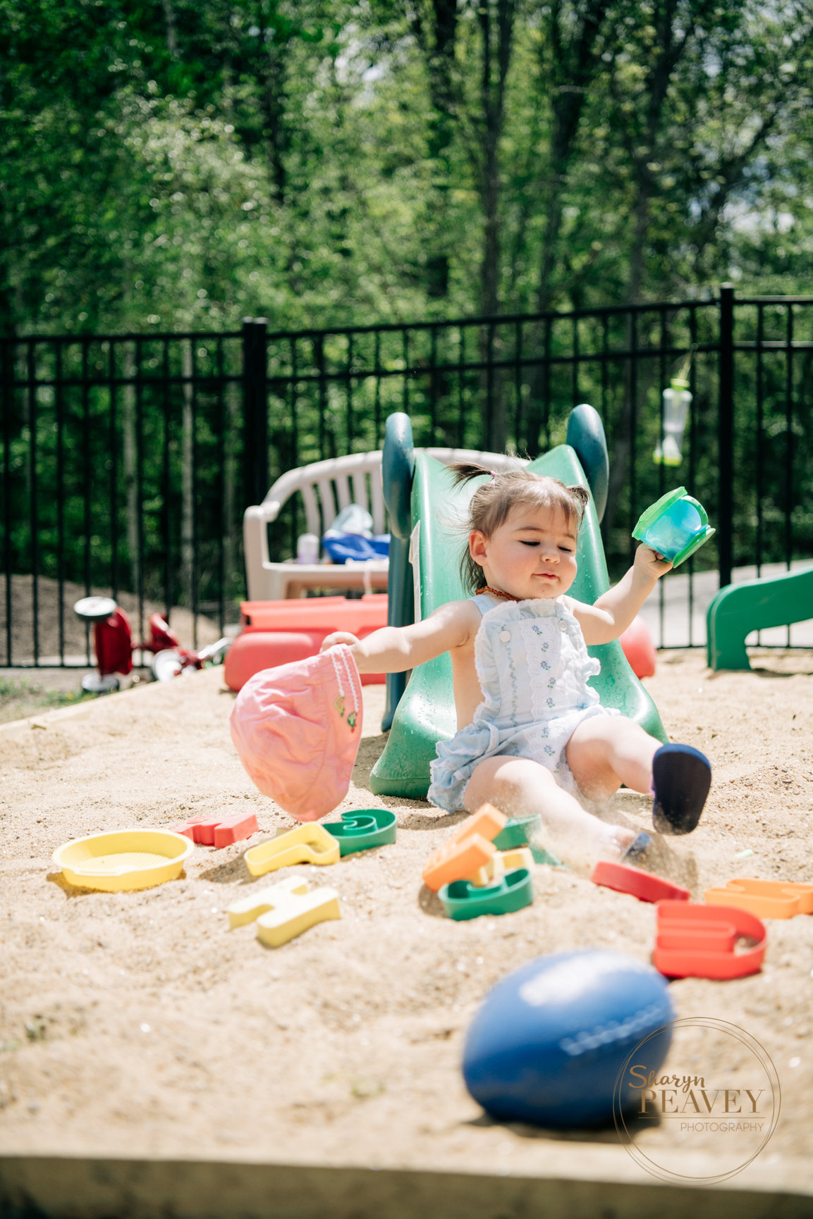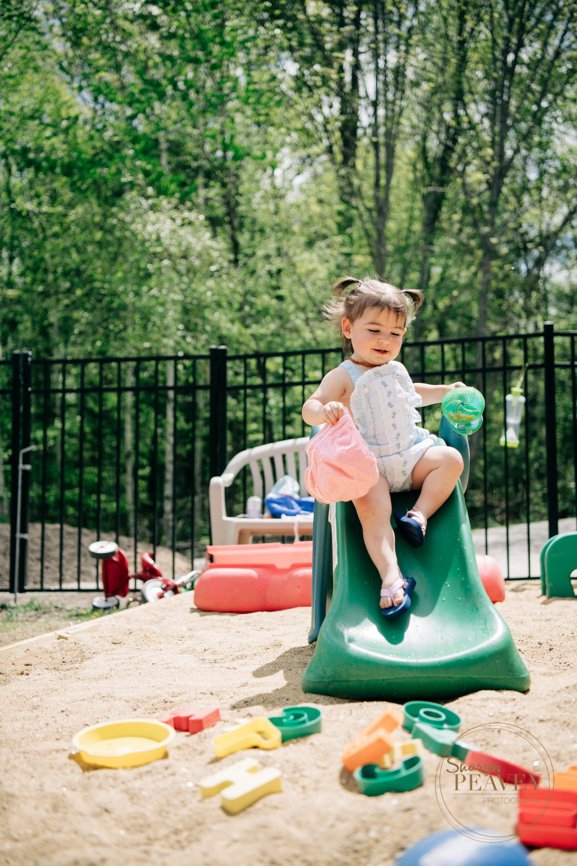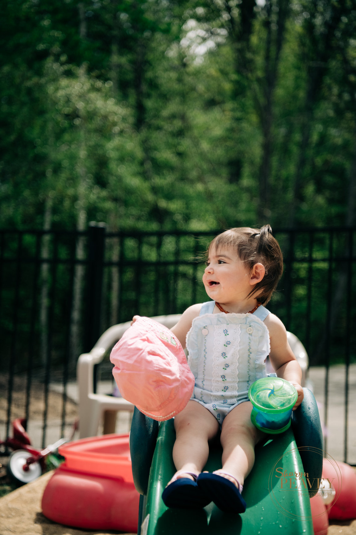 Outfit change #4. Still hanging in there with no nap, like a champ! A few snacks to keep her going.